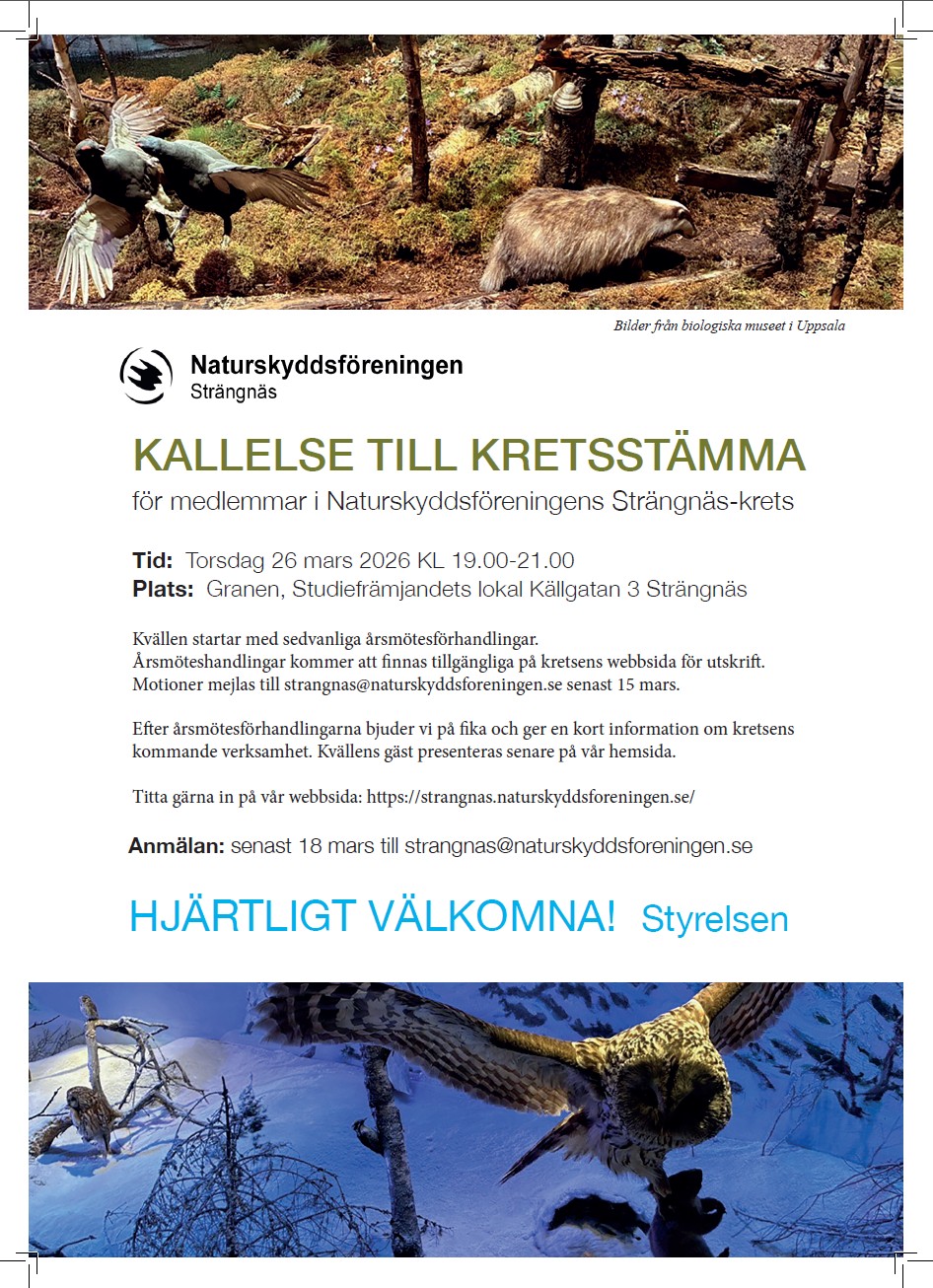 Välkommen till Strängnäskretsen! Kallelse till kretsstämma – Årsmöte! Kom och gör din röst hörd! Strängnäs natur & miljö behöver dig.